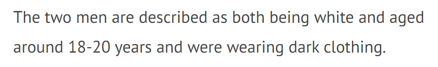 When the police are already under fire for two-tier policing, with special treatment given to minorities, religious extremists and the far left, the perception that we only get a description of a suspect if he’s white is not helpful. We’re already at the point where, if no description of a suspect is given, a large number of people simply assume they’re not white. Is this helpful for race relations? I don’t think so.